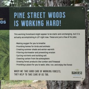 “You get the feeling you’re in a really nice parkland, but it’s free and feels more like Forest Service land,” Welker said. “But everywhere you look there’s interpretive signs telling you what tree species you’re looking at. There is educational signage around the property telling people about sustainable forestry practices. The whole property is an education center, not just the outdoor rec center, but the whole 180 acres.”